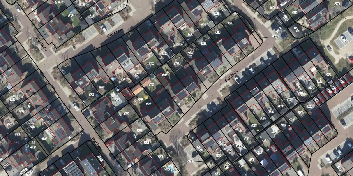 Gebruik de zoekbalk of klik op een perceel voor informatie over de adressen binnen dit perceel.