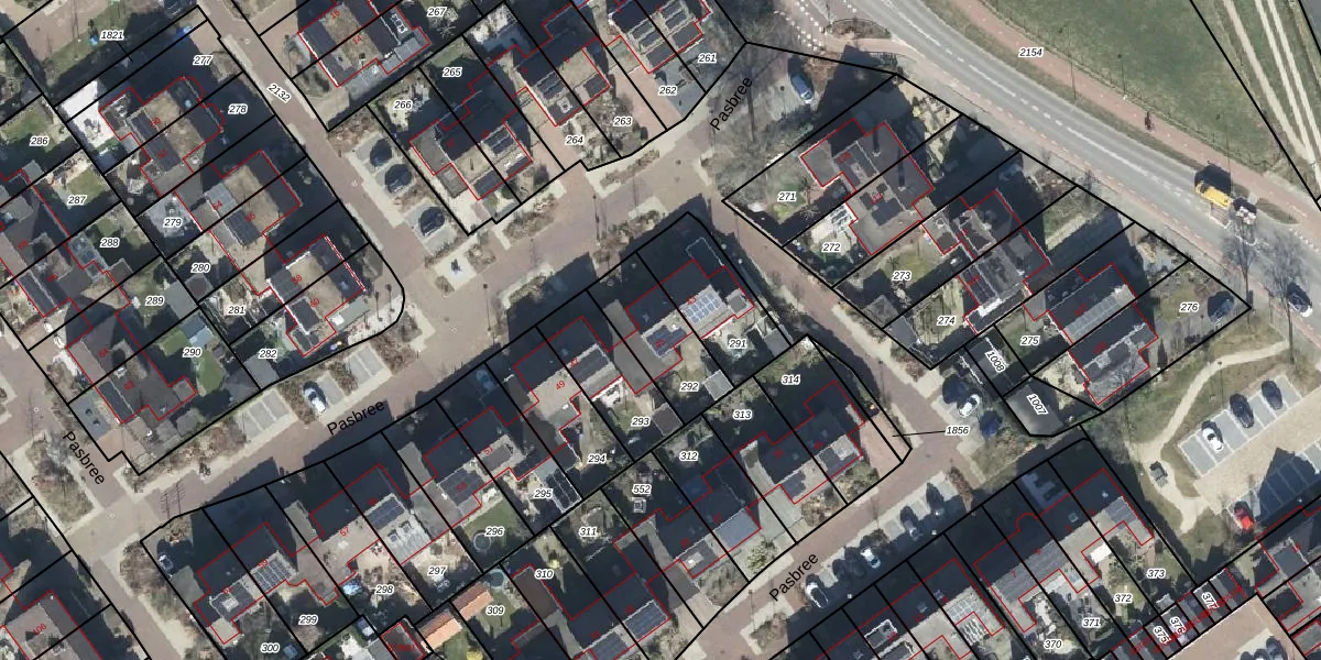 Het perceel waarop Pasbree 45 staat heeft een oppervlakte van 244 m². Dit is een middelgroot perceel. De perceeloppervlakte wordt geregistreerd door het Kadaster. Gedetailleerde informatie over de maten van dit perceel kunt u vinden in het rapport Kadastrale kaart met maatvoering van Pasbree 45.