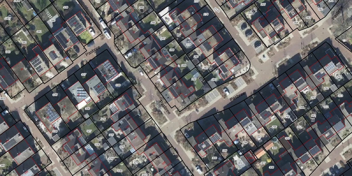 Het perceel waarop Pasbree 62 staat heeft een oppervlakte van 369 m². Dit is een groot perceel. De perceeloppervlakte wordt geregistreerd door het Kadaster. Gedetailleerde informatie over de maten van dit perceel kunt u vinden in het rapport Kadastrale kaart met maatvoering van Pasbree 62.