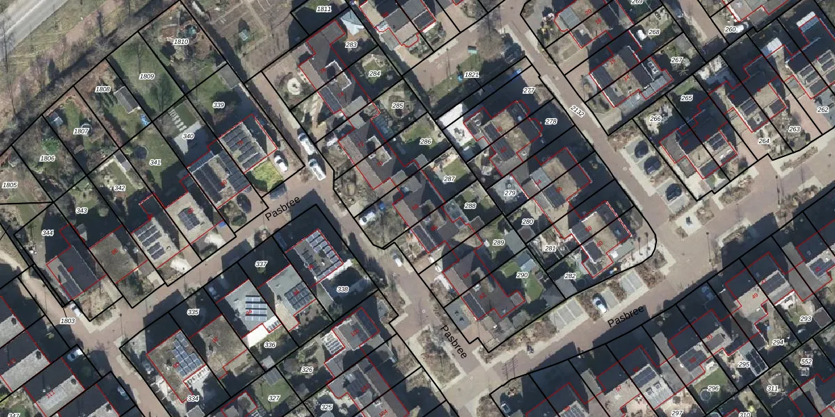 Het perceel waarop Pasbree 68 staat heeft een oppervlakte van 294 m². Dit is een middelgroot perceel. De perceeloppervlakte wordt geregistreerd door het Kadaster. Gedetailleerde informatie over de maten van dit perceel kunt u vinden in het rapport Kadastrale kaart met maatvoering van Pasbree 68.