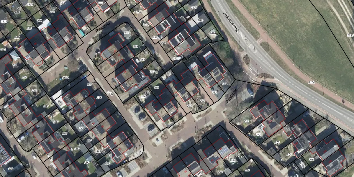 Gebruik de zoekbalk of klik op een perceel voor informatie over de adressen binnen dit perceel.