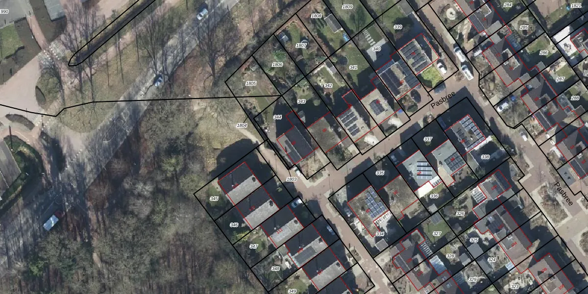 Het perceel waarop Pasbree 88 staat heeft een oppervlakte van 335 m². Dit is een groot perceel. De perceeloppervlakte wordt geregistreerd door het Kadaster. Gedetailleerde informatie over de maten van dit perceel kunt u vinden in het rapport Kadastrale kaart met maatvoering van Pasbree 88.