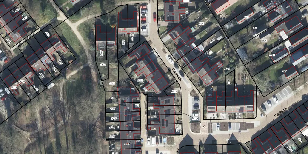 Het perceel waarop Pasbrink 48 staat heeft een oppervlakte van 1008 m². Dit is een zeer groot perceel. De perceeloppervlakte wordt geregistreerd door het Kadaster. Gedetailleerde informatie over de maten van dit perceel kunt u vinden in het rapport Kadastrale kaart met maatvoering van Pasbrink 48.