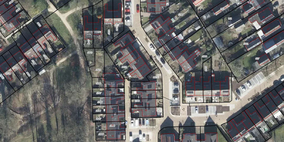 Het perceel waarop Pasbrink 50 staat heeft een oppervlakte van 1008 m². Dit is een zeer groot perceel. De perceeloppervlakte wordt geregistreerd door het Kadaster. Gedetailleerde informatie over de maten van dit perceel kunt u vinden in het rapport Kadastrale kaart met maatvoering van Pasbrink 50.