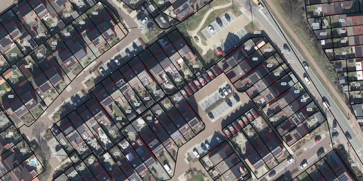 Gebruik de zoekbalk of klik op een perceel voor informatie over de adressen binnen dit perceel.