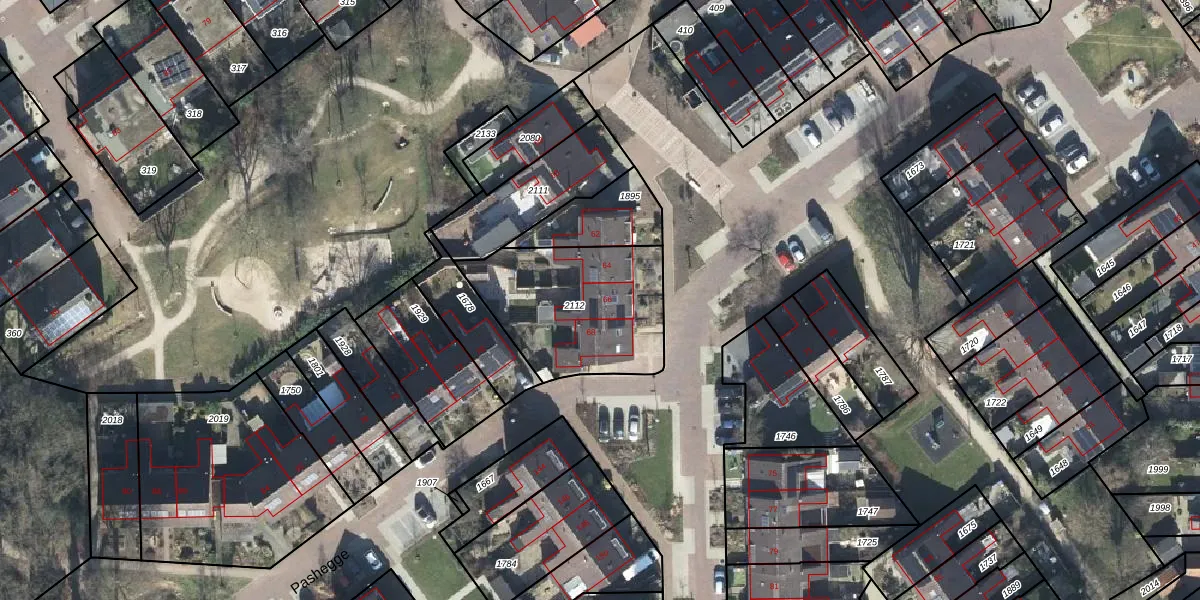 Het perceel waarop Pashegge 66 staat heeft een oppervlakte van 597 m². Dit is een groot perceel. De perceeloppervlakte wordt geregistreerd door het Kadaster. Gedetailleerde informatie over de maten van dit perceel kunt u vinden in het rapport Kadastrale kaart met maatvoering van Pashegge 66.