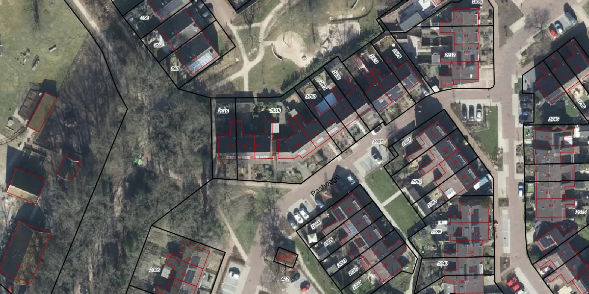 Het perceel waarop Pashegge 84 staat heeft een oppervlakte van 846 m². Dit is een groot perceel. De perceeloppervlakte wordt geregistreerd door het Kadaster. Gedetailleerde informatie over de maten van dit perceel kunt u vinden in het rapport Kadastrale kaart met maatvoering van Pashegge 84.