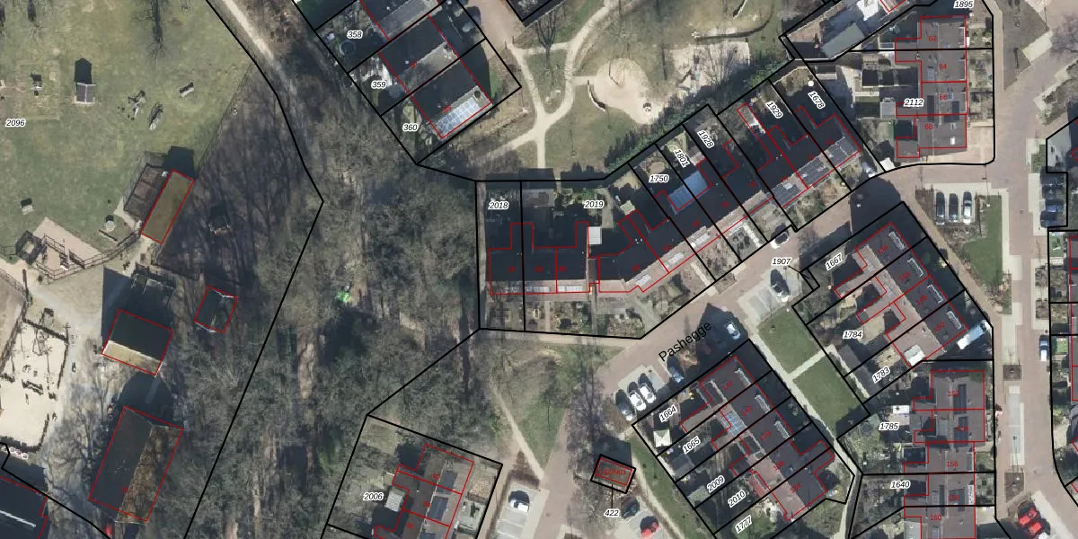 Het perceel waarop Pashegge 88 staat heeft een oppervlakte van 846 m². Dit is een groot perceel. De perceeloppervlakte wordt geregistreerd door het Kadaster. Gedetailleerde informatie over de maten van dit perceel kunt u vinden in het rapport Kadastrale kaart met maatvoering van Pashegge 88.