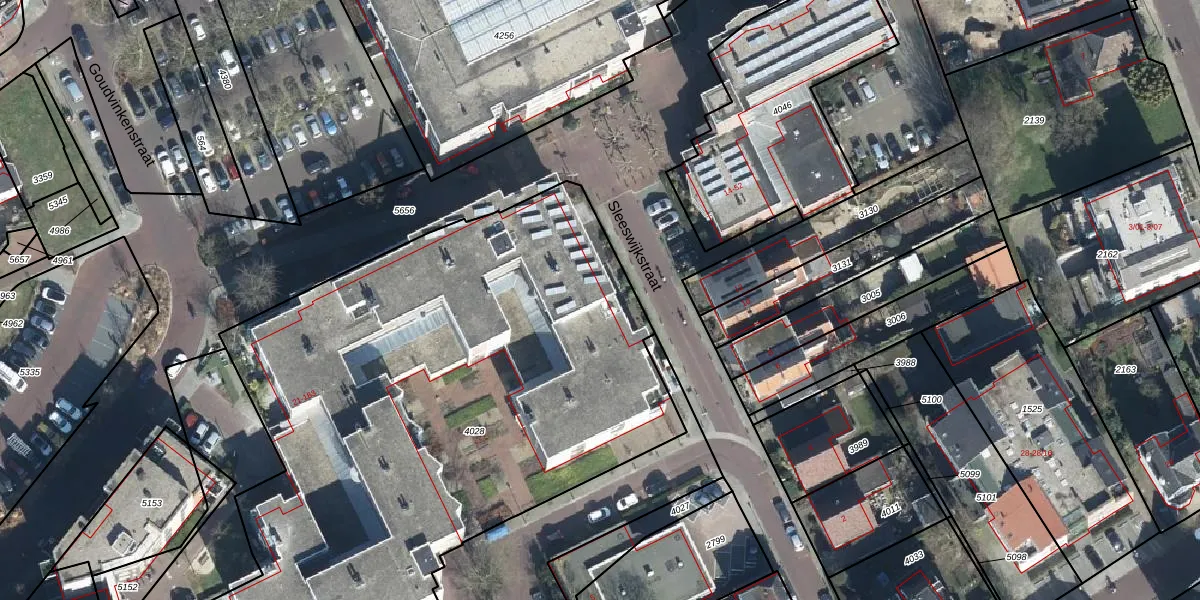 Het perceel waarop Sleeswijkstraat 119 staat heeft een oppervlakte van 3825 m². Dit is een zeer groot perceel. De perceeloppervlakte wordt geregistreerd door het Kadaster. Gedetailleerde informatie over de maten van dit perceel kunt u vinden in het rapport Kadastrale kaart met maatvoering van Sleeswijkstraat 119.