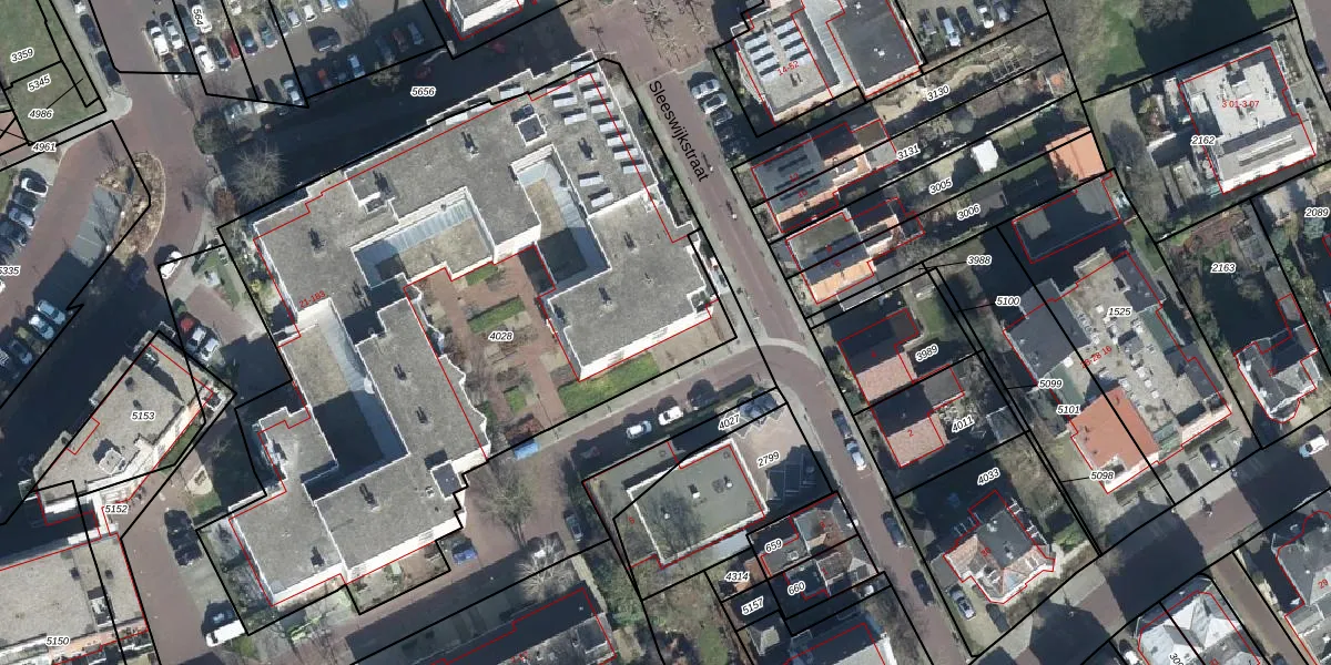Het perceel waarop Sleeswijkstraat 25 staat heeft een oppervlakte van 3825 m². Dit is een zeer groot perceel. De perceeloppervlakte wordt geregistreerd door het Kadaster. Gedetailleerde informatie over de maten van dit perceel kunt u vinden in het rapport Kadastrale kaart met maatvoering van Sleeswijkstraat 25.