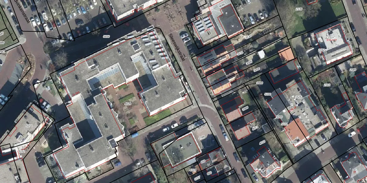 Het perceel waarop Sleeswijkstraat 35 staat heeft een oppervlakte van 3825 m². Dit is een zeer groot perceel. De perceeloppervlakte wordt geregistreerd door het Kadaster. Gedetailleerde informatie over de maten van dit perceel kunt u vinden in het rapport Kadastrale kaart met maatvoering van Sleeswijkstraat 35.