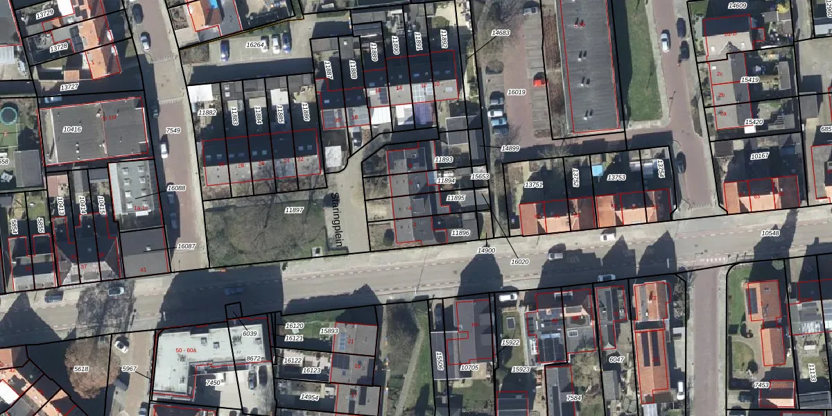 Het perceel waarop Staringplein 4 staat heeft een oppervlakte van 142 m². Dit is een middelgroot perceel. De perceeloppervlakte wordt geregistreerd door het Kadaster. Gedetailleerde informatie over de maten van dit perceel kunt u vinden in het rapport Kadastrale kaart met maatvoering van Staringplein 4.