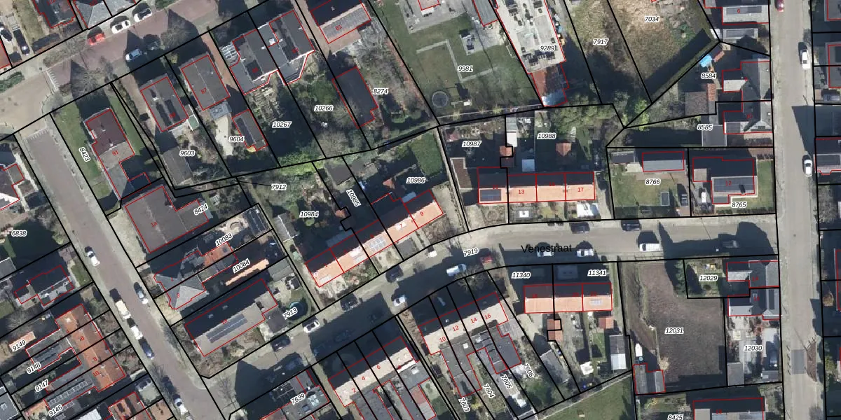 Venestraat 9 is gelegen op kadastraal perceel WTW00H10986. Deze kadastrale aanduiding is uniek en wordt gebruikt door het Kadaster om eigendomsrechten en andere zakelijke rechten vast te leggen. Het perceel maakt onderdeel uit van de kadastrale gemeente Winterswijk.
