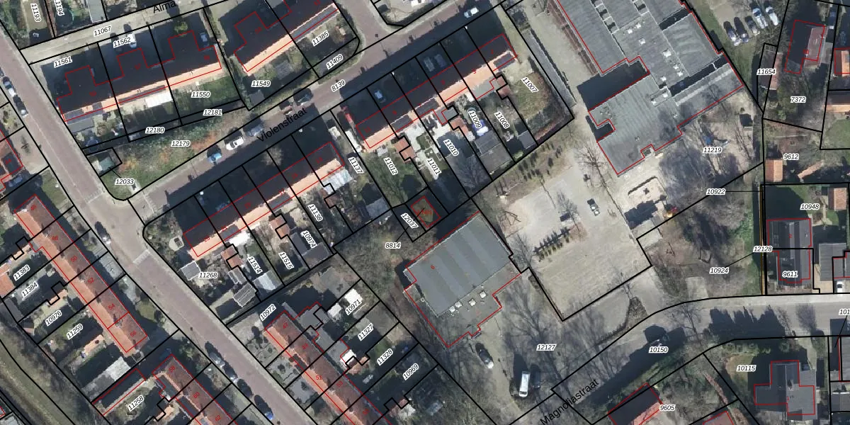 Het perceel waarop Violenstraat 1-N01 staat heeft een oppervlakte van 55 m². Dit is een klein perceel. De perceeloppervlakte wordt geregistreerd door het Kadaster. Gedetailleerde informatie over de maten van dit perceel kunt u vinden in het rapport Kadastrale kaart met maatvoering van Violenstraat 1-N01.
