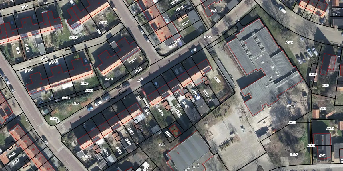 Gebruik de zoekbalk of klik op een perceel voor informatie over de adressen binnen dit perceel.