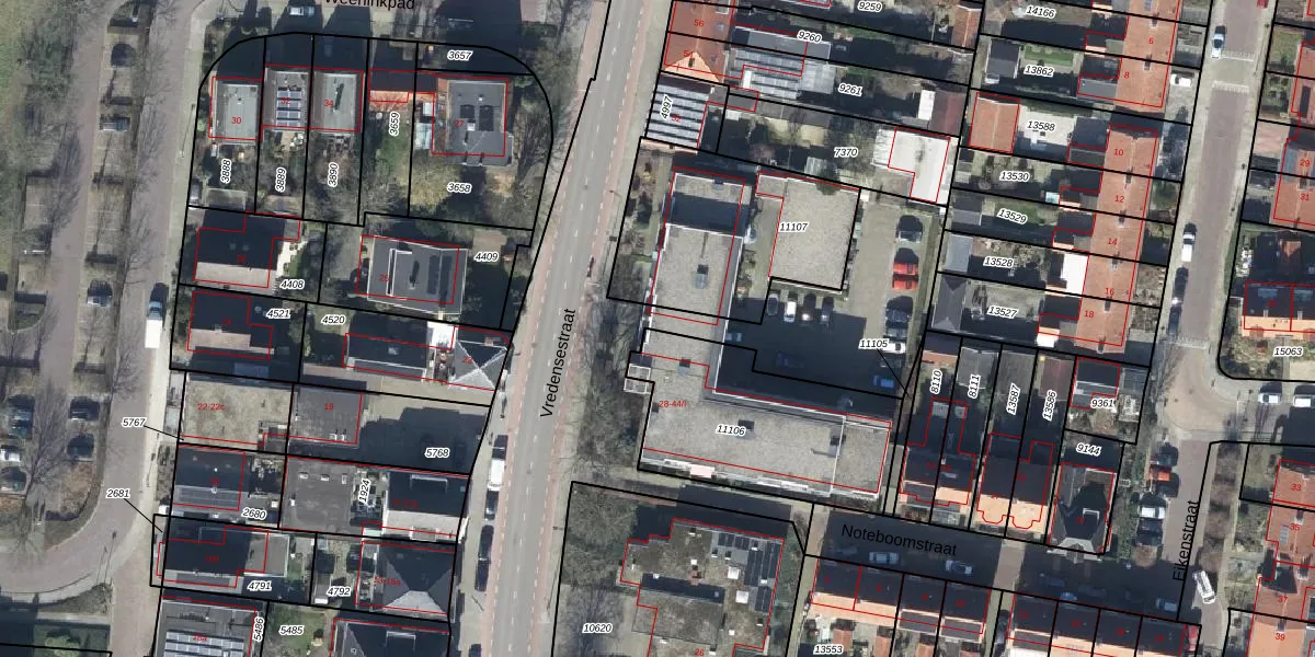 Het perceel waarop Vredensestraat 40-II staat heeft een oppervlakte van 1,0 ha. Dit is een zeer groot perceel. De perceeloppervlakte wordt geregistreerd door het Kadaster. Gedetailleerde informatie over de maten van dit perceel kunt u vinden in het rapport Kadastrale kaart met maatvoering van Vredensestraat 40-II.