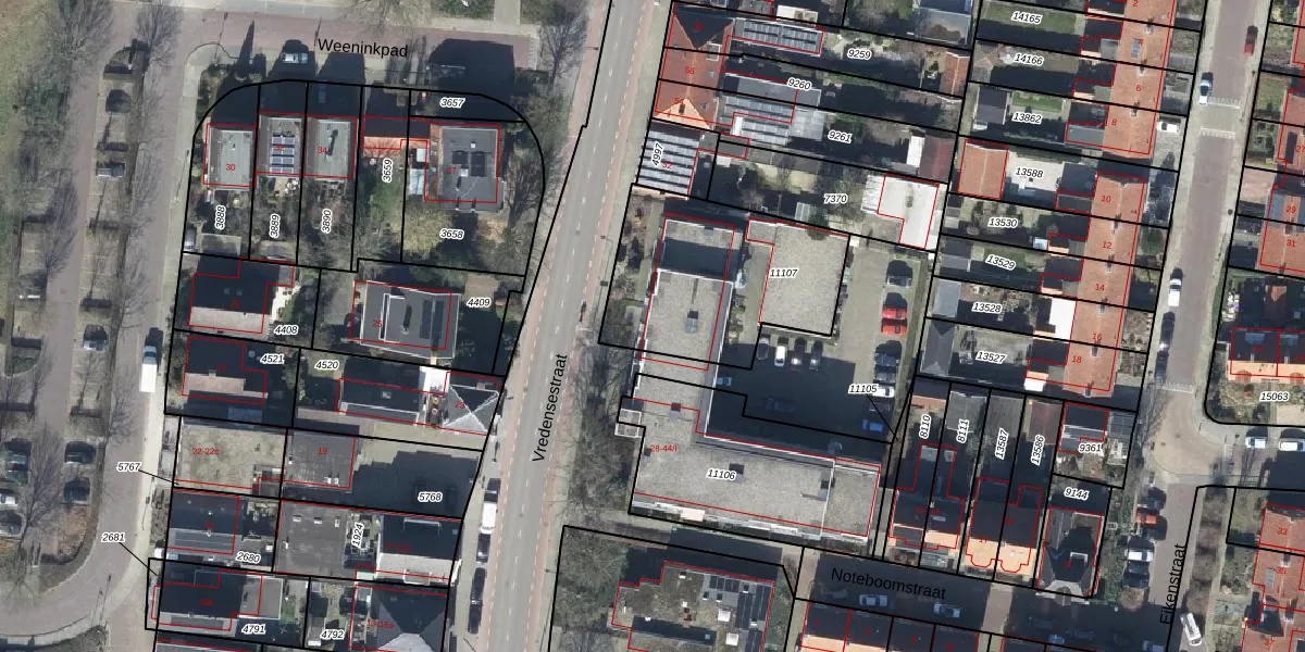 Het perceel waarop Vredensestraat 42-II staat heeft een oppervlakte van 735 m². Dit is een groot perceel. De perceeloppervlakte wordt geregistreerd door het Kadaster. Gedetailleerde informatie over de maten van dit perceel kunt u vinden in het rapport Kadastrale kaart met maatvoering van Vredensestraat 42-II.