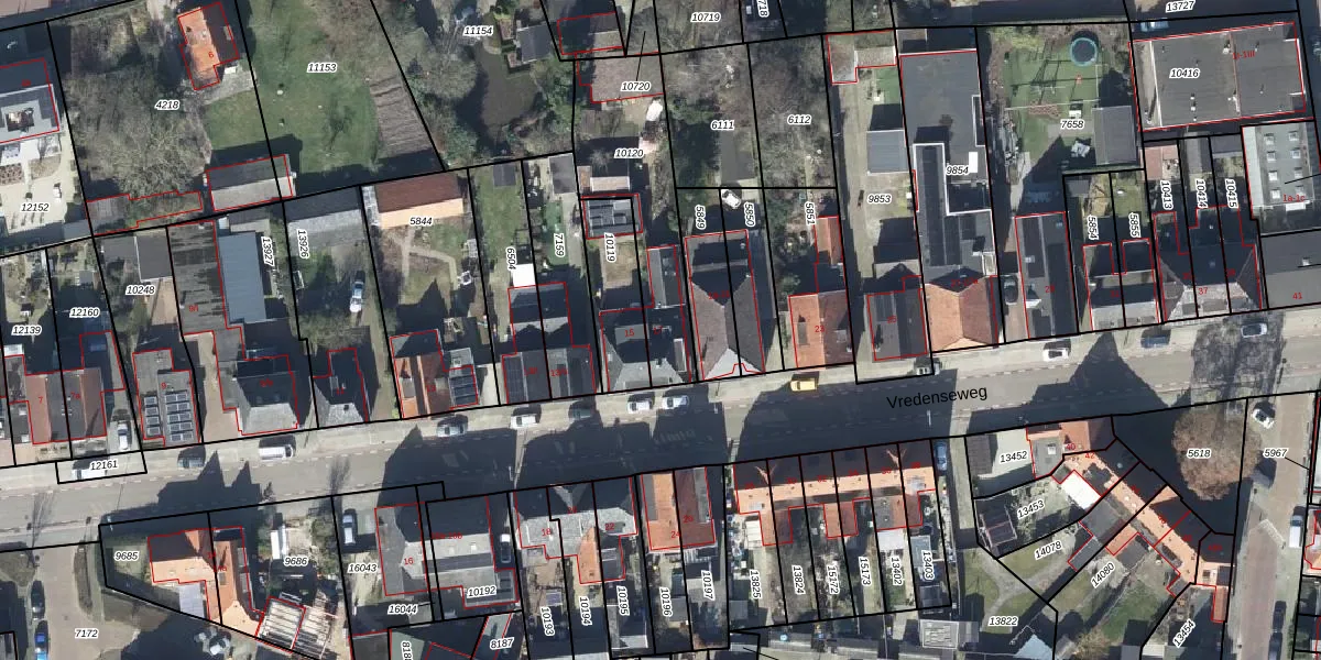 Vredenseweg 17 is gelegen op kadastraal perceel WTW00I10120. Deze kadastrale aanduiding is uniek en wordt gebruikt door het Kadaster om eigendomsrechten en andere zakelijke rechten vast te leggen. Het perceel maakt onderdeel uit van de kadastrale gemeente Winterswijk.