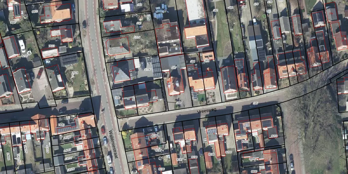 Het perceel waarop Vreesweg 1 staat heeft een oppervlakte van 437 m². Dit is een groot perceel. De perceeloppervlakte wordt geregistreerd door het Kadaster. Gedetailleerde informatie over de maten van dit perceel kunt u vinden in het rapport Kadastrale kaart met maatvoering van Vreesweg 1.