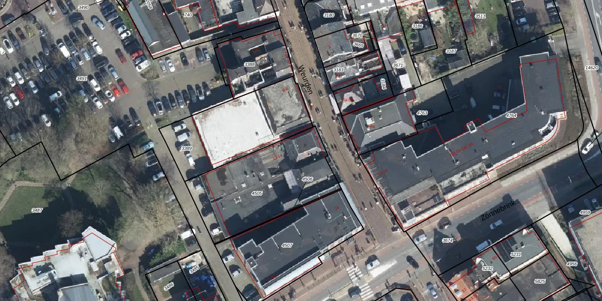 Het perceel waarop Weurden 10 staat heeft een oppervlakte van 1070 m². Dit is een zeer groot perceel. De perceeloppervlakte wordt geregistreerd door het Kadaster. Gedetailleerde informatie over de maten van dit perceel kunt u vinden in het rapport Kadastrale kaart met maatvoering van Weurden 10.