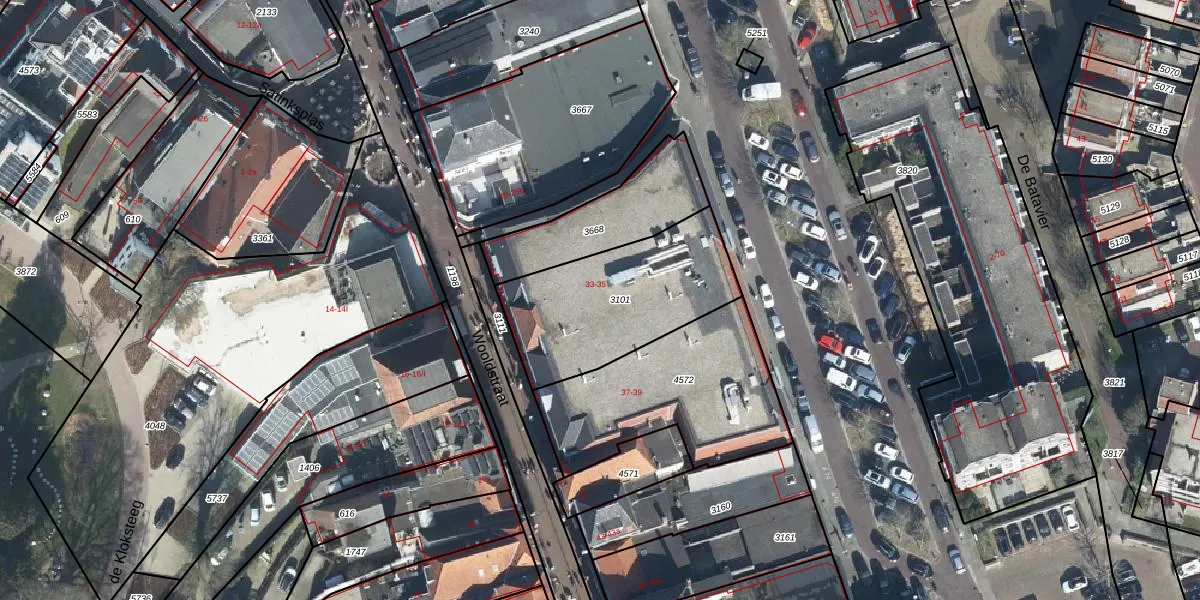 Gebruik de zoekbalk of klik op een perceel voor informatie over de adressen binnen dit perceel.