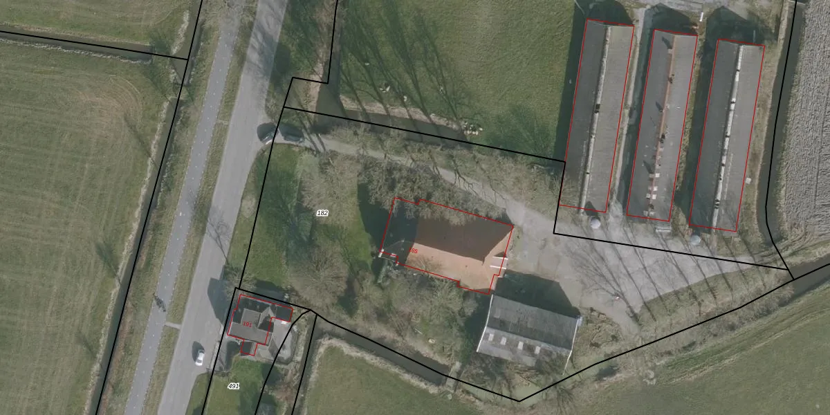 Het perceel waarop Brédyk 185 staat heeft een oppervlakte van 4955 m². Dit is een zeer groot perceel. De perceeloppervlakte wordt geregistreerd door het Kadaster. Gedetailleerde informatie over de maten van dit perceel kunt u vinden in het rapport Kadastrale kaart met maatvoering van Brédyk 185.