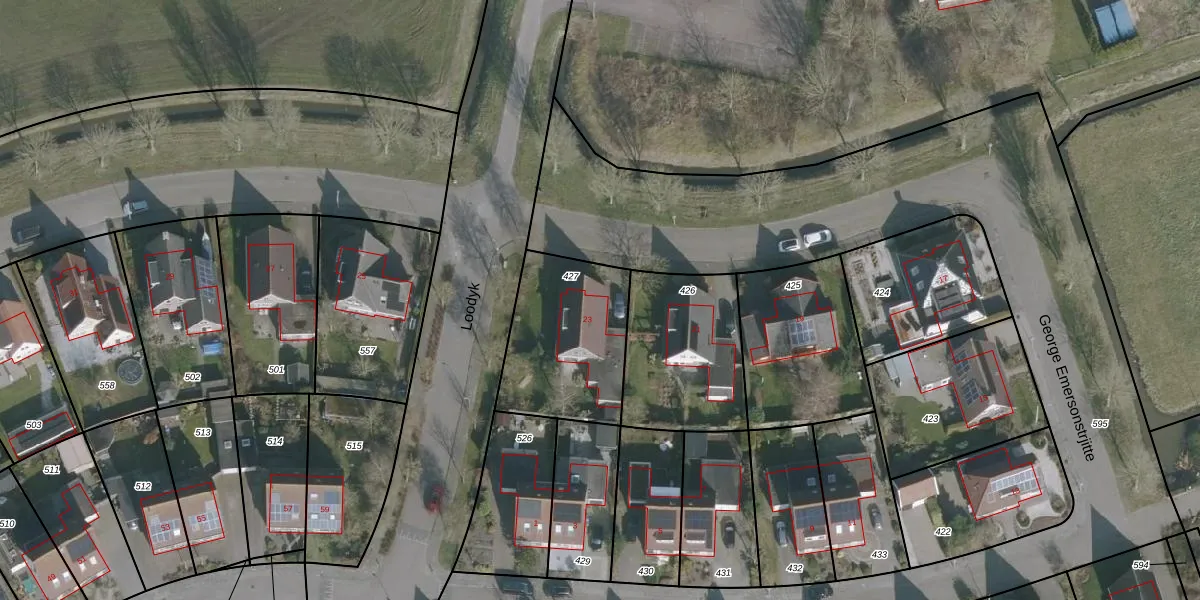 Het perceel waarop George Emersonstrjitte 23 staat heeft een oppervlakte van 519 m². Dit is een groot perceel. De perceeloppervlakte wordt geregistreerd door het Kadaster. Gedetailleerde informatie over de maten van dit perceel kunt u vinden in het rapport Kadastrale kaart met maatvoering van George Emersonstrjitte 23.