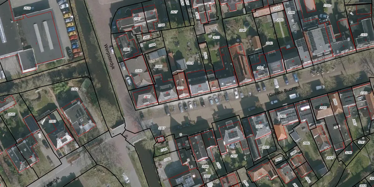 Het perceel waarop Greate Buorren 24 staat heeft een oppervlakte van 89 m². Dit is een klein perceel. De perceeloppervlakte wordt geregistreerd door het Kadaster. Gedetailleerde informatie over de maten van dit perceel kunt u vinden in het rapport Kadastrale kaart met maatvoering van Greate Buorren 24.