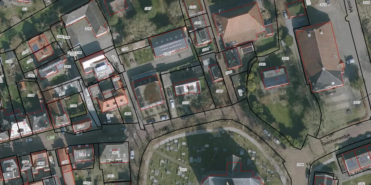 Hôf 16 is gelegen op kadastraal perceel WDM00B2519. Deze kadastrale aanduiding is uniek en wordt gebruikt door het Kadaster om eigendomsrechten en andere zakelijke rechten vast te leggen. Het perceel maakt onderdeel uit van de kadastrale gemeente Wirdum.