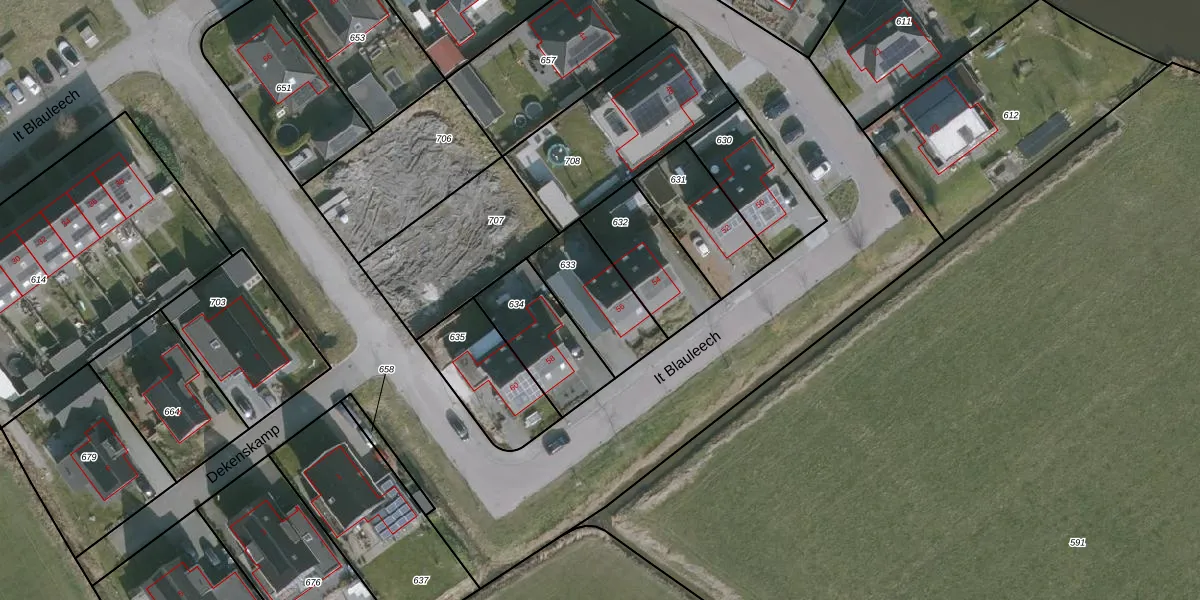 Het perceel waarop het adres ligt is WDM00-F-633. De afkorting 'WDM00' staat voor kadastrale gemeente Wirdum. Het perceel is kleiner dan gemiddeld in Wirdum. Het perceel is 274 m² groot, terwijl het gemiddelde ligt op 8279,66 m². Het kleinste perceel in de kadastrale gemeente is 0 m² groot. De grootste perceeloppervlakte is 47,0 ha. Er zijn geen andere adressen aanwezig op het perceel. De laatste wijziging in het de Basisregistratie Kadaster (BRK) was op 05-07-2021.