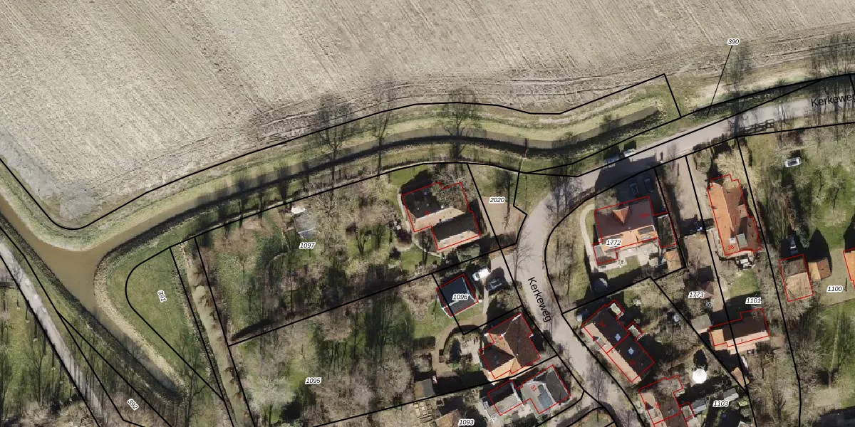 Het perceel waarop Kerkeweg 35 staat heeft een oppervlakte van 1740 m². Dit is een zeer groot perceel. De perceeloppervlakte wordt geregistreerd door het Kadaster. Gedetailleerde informatie over de maten van dit perceel kunt u vinden in het rapport Kadastrale kaart met maatvoering van Kerkeweg 35.