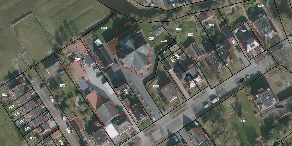 Het perceel waarop Legedyk 18 staat heeft een oppervlakte van 2267 m². Dit is een zeer groot perceel. De perceeloppervlakte wordt geregistreerd door het Kadaster. Gedetailleerde informatie over de maten van dit perceel kunt u vinden in het rapport Kadastrale kaart met maatvoering van Legedyk 18.
