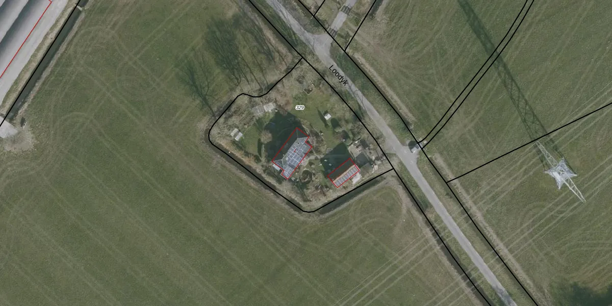 Het perceel waarop Loodyk 1 staat heeft een oppervlakte van 1650 m². Dit is een zeer groot perceel. De perceeloppervlakte wordt geregistreerd door het Kadaster. Gedetailleerde informatie over de maten van dit perceel kunt u vinden in het rapport Kadastrale kaart met maatvoering van Loodyk 1.