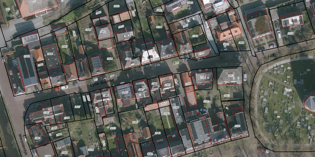 Lytse Buorren 9 is gelegen op kadastraal perceel WDM00B2506. Deze kadastrale aanduiding is uniek en wordt gebruikt door het Kadaster om eigendomsrechten en andere zakelijke rechten vast te leggen. Het perceel maakt onderdeel uit van de kadastrale gemeente Wirdum.