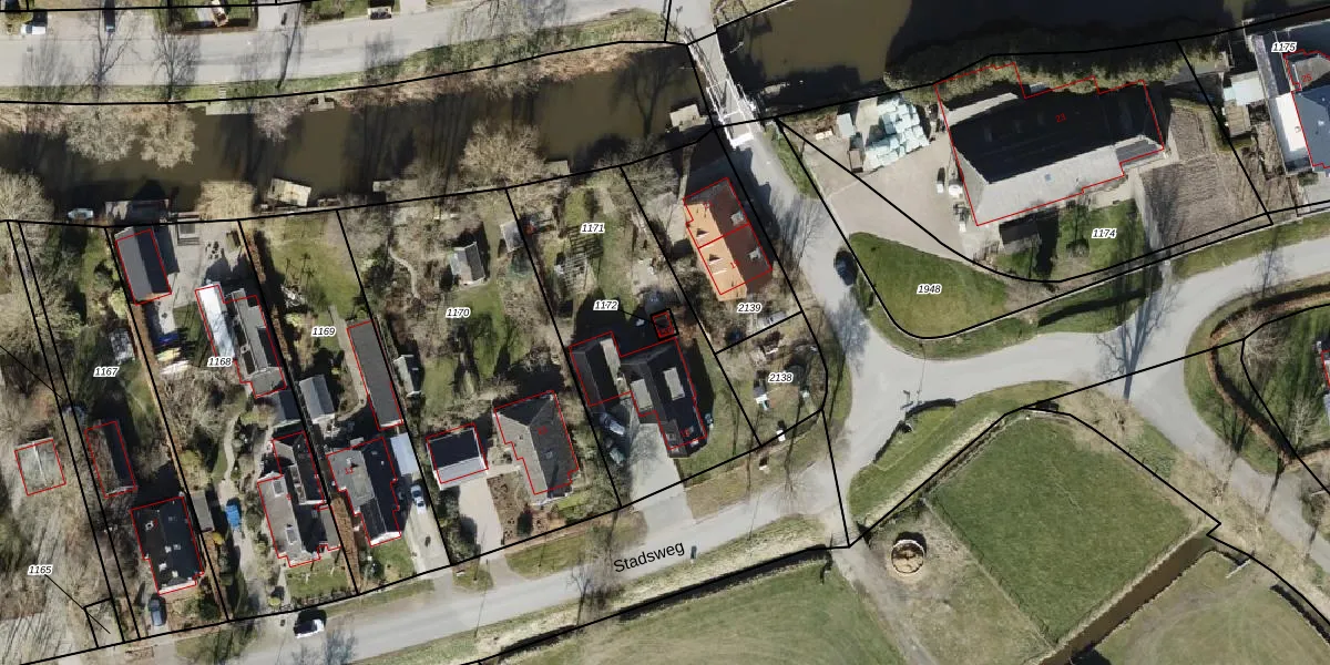 Het perceel waarop Stadsweg 15-T staat heeft een oppervlakte van 12 m². Dit is een klein perceel. De perceeloppervlakte wordt geregistreerd door het Kadaster. Gedetailleerde informatie over de maten van dit perceel kunt u vinden in het rapport Kadastrale kaart met maatvoering van Stadsweg 15-T.