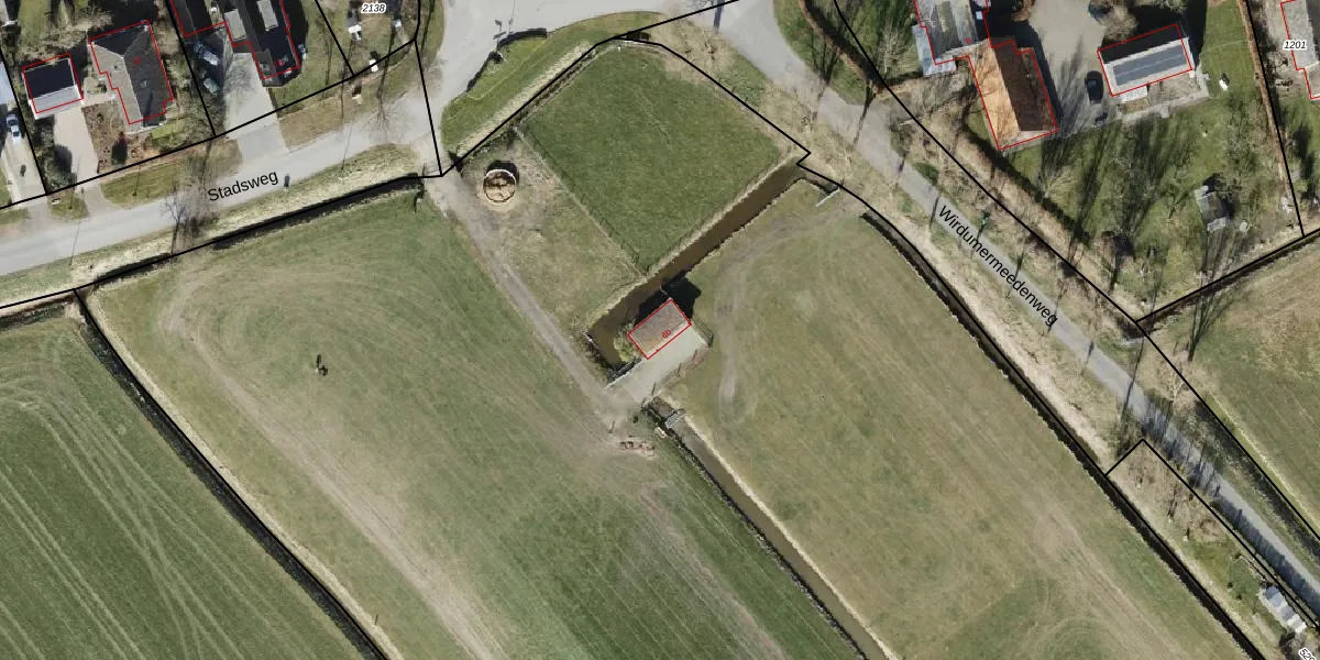 Het perceel waarop Stadsweg 6-b staat heeft een oppervlakte van 3,5 ha. Dit is een zeer groot perceel. De perceeloppervlakte wordt geregistreerd door het Kadaster. Gedetailleerde informatie over de maten van dit perceel kunt u vinden in het rapport Kadastrale kaart met maatvoering van Stadsweg 6-b.