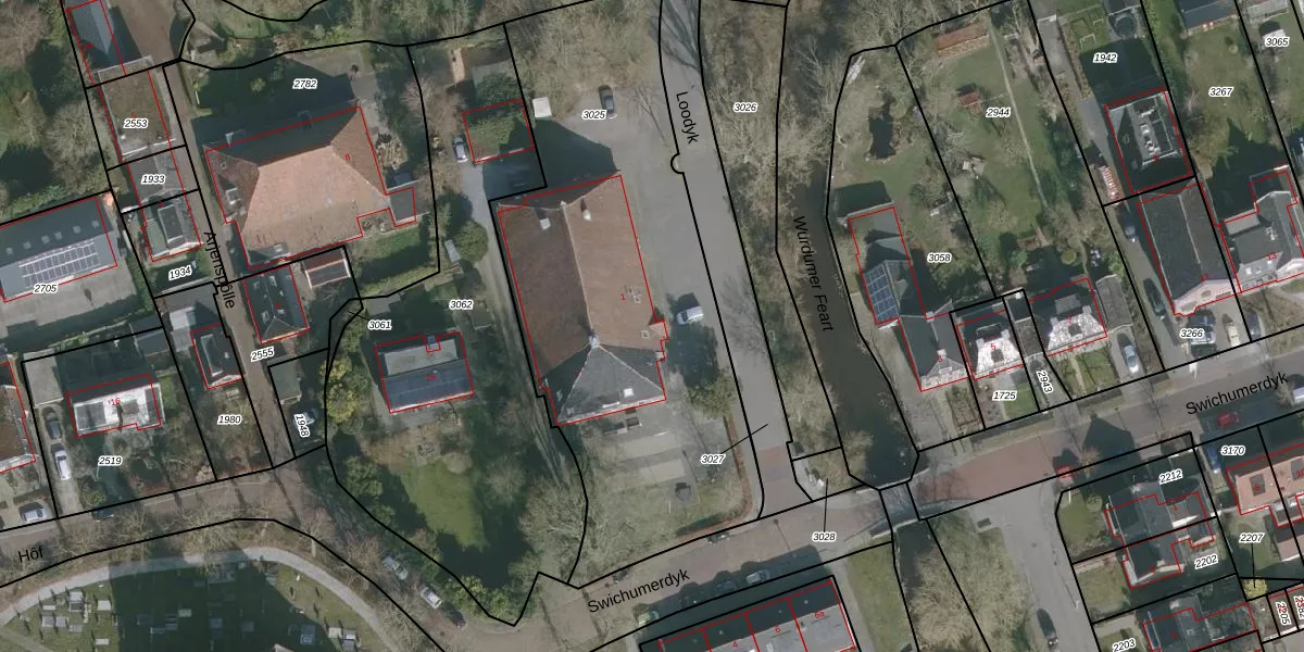 Swichumerdyk 1 is gelegen op kadastraal perceel WDM00B3025. Deze kadastrale aanduiding is uniek en wordt gebruikt door het Kadaster om eigendomsrechten en andere zakelijke rechten vast te leggen. Het perceel maakt onderdeel uit van de kadastrale gemeente Wirdum.