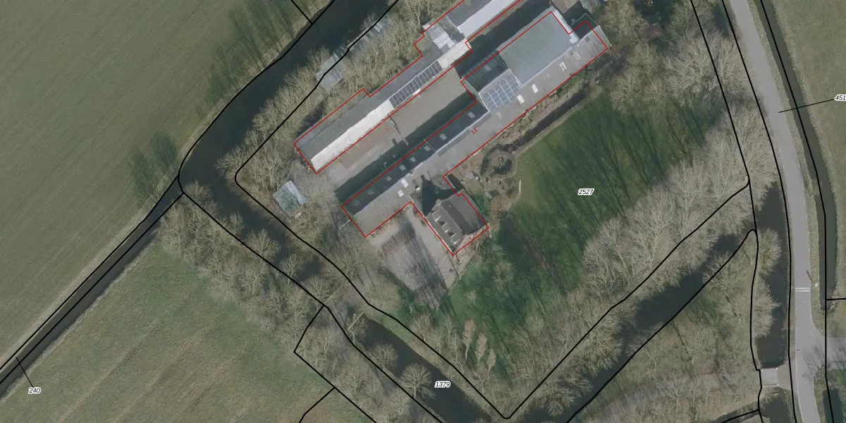 Het adres is gelegen op perceel 2527 in de sectie B en de kadastrale gemeente Wirdum. De kadastrale aanduiding is aldus WDM00-B-2527. Het perceel is met 9710 m² relatief groot. Het gemiddelde ligt in de kadastrale gemeente Wirdum op 8279,66 m². Het kleinste perceel in de kadastrale gemeente is 0 m² groot. De grootste perceeloppervlakte is 47,0 ha. Dit is het enige adres dat aanwezig is op het perceel. De huidige grenzen van het perceel zijn digitaal in de Basisregistratie Kadaster (BRK) geregistreerd op 15-01-1998.