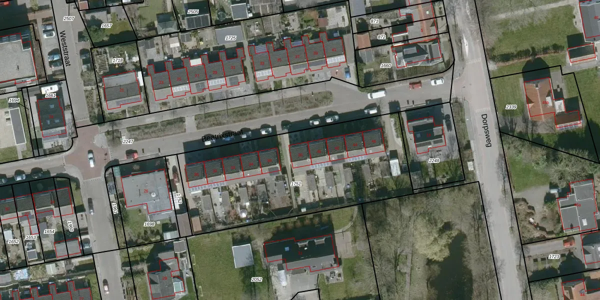 Het perceel waarop Beatrixstraat 38 staat heeft een oppervlakte van 2062 m². Dit is een zeer groot perceel. De perceeloppervlakte wordt geregistreerd door het Kadaster. Gedetailleerde informatie over de maten van dit perceel kunt u vinden in het rapport Kadastrale kaart met maatvoering van Beatrixstraat 38.