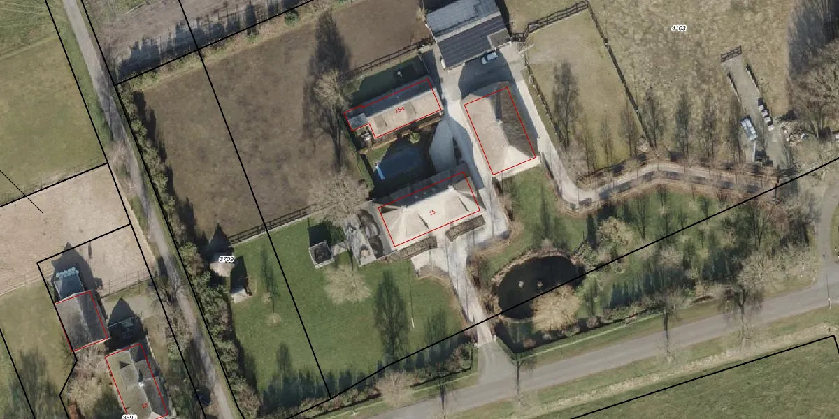 Het perceel waarop de Haar 15 staat heeft een oppervlakte van 1,3 ha. Dit is een zeer groot perceel. De perceeloppervlakte wordt geregistreerd door het Kadaster. Gedetailleerde informatie over de maten van dit perceel kunt u vinden in het rapport Kadastrale kaart met maatvoering van de Haar 15.