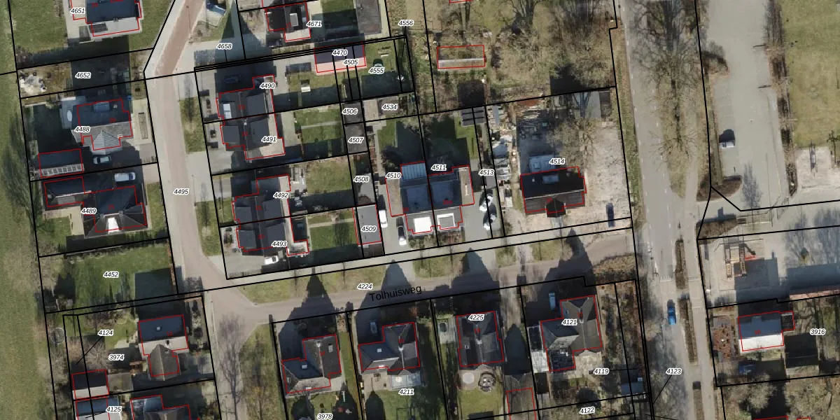 Tolhuisweg 19 is gelegen op kadastraal perceel OMN02A4510. Deze kadastrale aanduiding is uniek en wordt gebruikt door het Kadaster om eigendomsrechten en andere zakelijke rechten vast te leggen. Het perceel maakt onderdeel uit van de kadastrale gemeente Stad-Ommen.