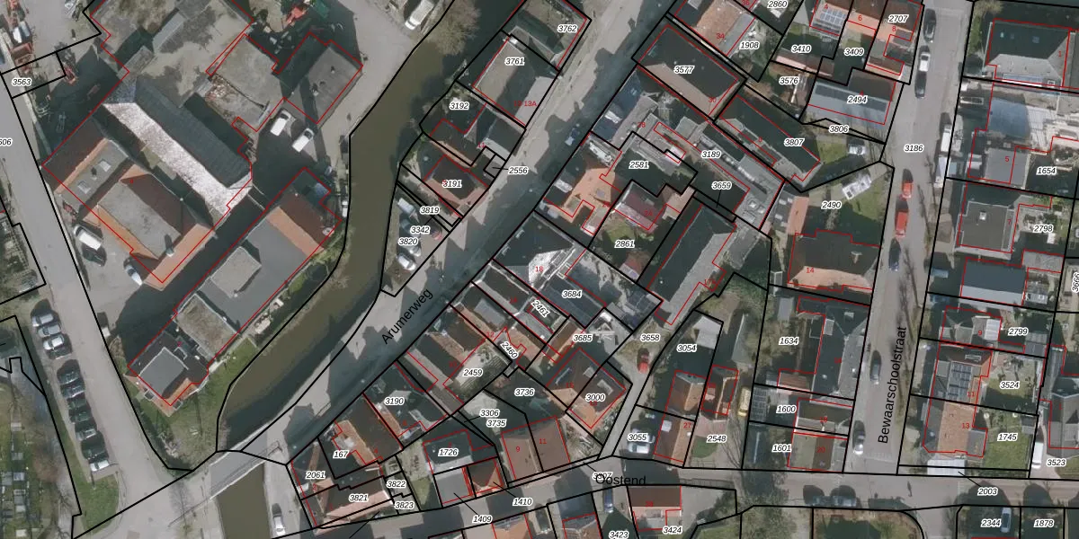 Gebruik de zoekbalk of klik op een perceel voor informatie over de adressen binnen dit perceel.
