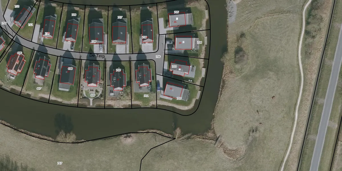 Het perceel waarop De Terp 32 staat heeft een oppervlakte van 487 m². Dit is een groot perceel. De perceeloppervlakte wordt geregistreerd door het Kadaster. Gedetailleerde informatie over de maten van dit perceel kunt u vinden in het rapport Kadastrale kaart met maatvoering van De Terp 32.