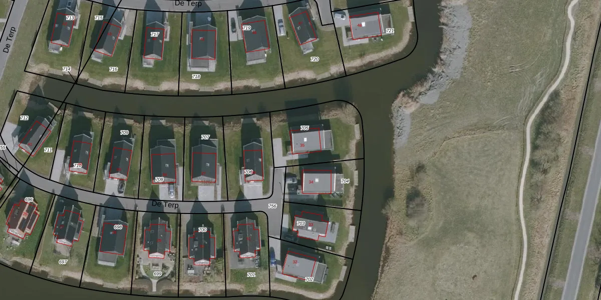 Het perceel waarop De Terp 35 staat heeft een oppervlakte van 579 m². Dit is een groot perceel. De perceeloppervlakte wordt geregistreerd door het Kadaster. Gedetailleerde informatie over de maten van dit perceel kunt u vinden in het rapport Kadastrale kaart met maatvoering van De Terp 35.