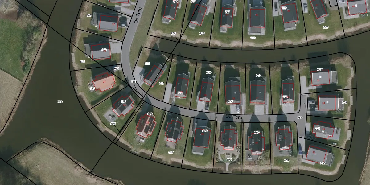 Het perceel waarop De Terp 40 staat heeft een oppervlakte van 381 m². Dit is een groot perceel. De perceeloppervlakte wordt geregistreerd door het Kadaster. Gedetailleerde informatie over de maten van dit perceel kunt u vinden in het rapport Kadastrale kaart met maatvoering van De Terp 40.