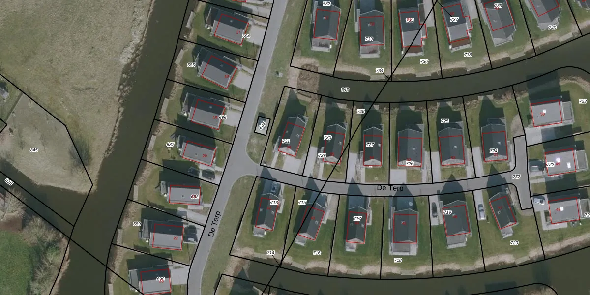 Het perceel waarop De Terp 56 staat heeft een oppervlakte van 388 m². Dit is een groot perceel. De perceeloppervlakte wordt geregistreerd door het Kadaster. Gedetailleerde informatie over de maten van dit perceel kunt u vinden in het rapport Kadastrale kaart met maatvoering van De Terp 56.