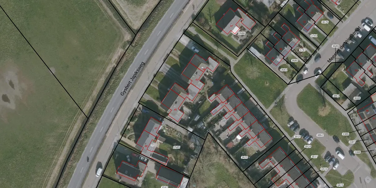 Het perceel waarop Gysbert Japiksweg 43 staat heeft een oppervlakte van 2612 m². Dit is een zeer groot perceel. De perceeloppervlakte wordt geregistreerd door het Kadaster. Gedetailleerde informatie over de maten van dit perceel kunt u vinden in het rapport Kadastrale kaart met maatvoering van Gysbert Japiksweg 43.
