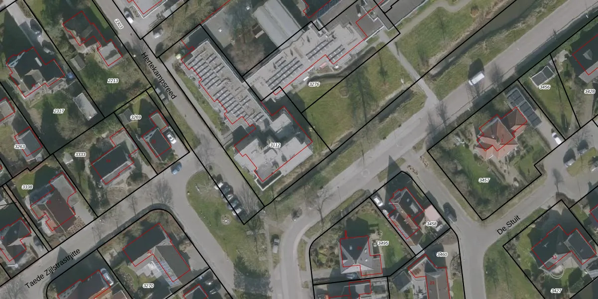 Hertekampsreed 1 is gelegen op kadastraal perceel WMS03B3112. Deze kadastrale aanduiding is uniek en wordt gebruikt door het Kadaster om eigendomsrechten en andere zakelijke rechten vast te leggen. Het perceel maakt onderdeel uit van de kadastrale gemeente Witmarsum.