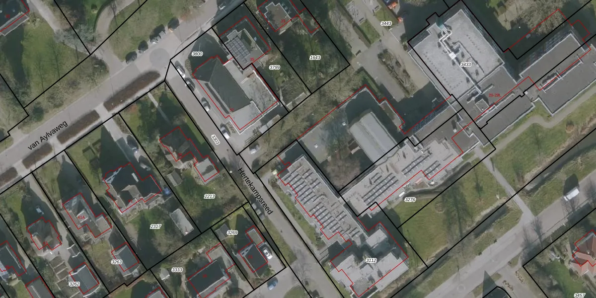 Het perceel waarop Hertekampsreed 1-A staat heeft een oppervlakte van 1400 m². Dit is een zeer groot perceel. De perceeloppervlakte wordt geregistreerd door het Kadaster. Gedetailleerde informatie over de maten van dit perceel kunt u vinden in het rapport Kadastrale kaart met maatvoering van Hertekampsreed 1-A.