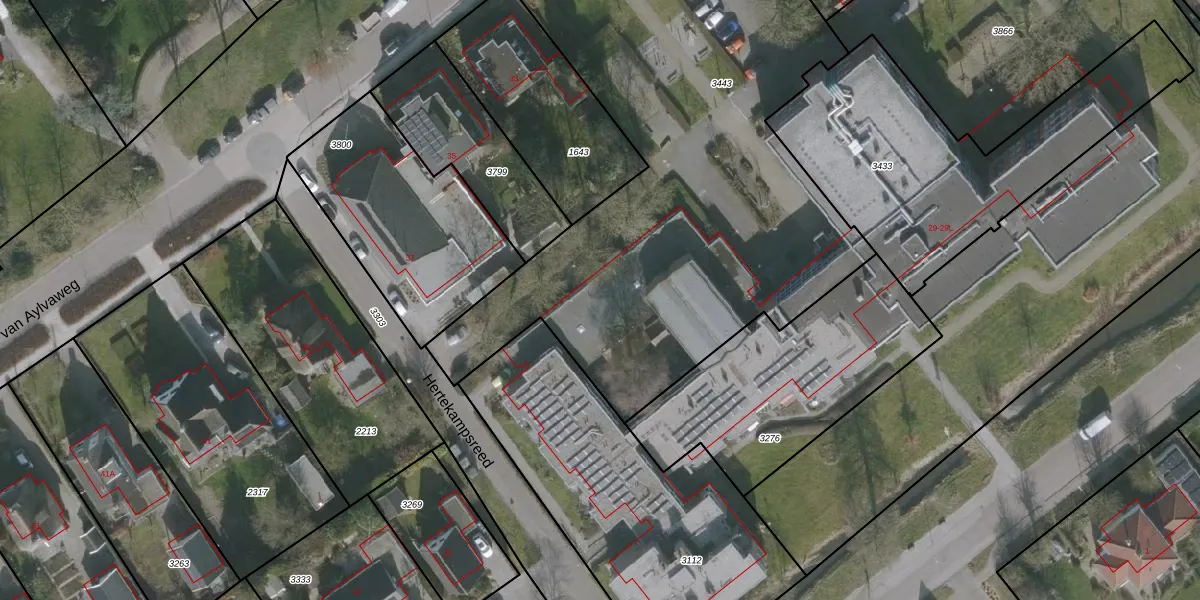 Het perceel waarop Hertekampsreed 29 staat heeft een oppervlakte van 3394 m². Dit is een zeer groot perceel. De perceeloppervlakte wordt geregistreerd door het Kadaster. Gedetailleerde informatie over de maten van dit perceel kunt u vinden in het rapport Kadastrale kaart met maatvoering van Hertekampsreed 29.